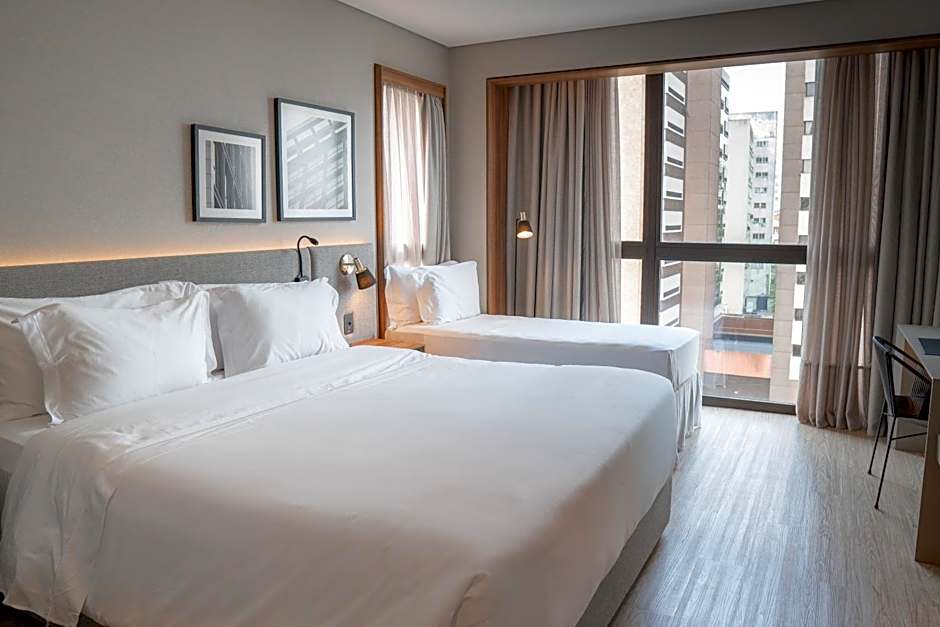 Featuring free toiletries and bathrobes, this family room includes a private bathroom with a shower, a hairdryer and slippers. The air-conditioned family room features a flat-screen TV with streaming services, soundproof walls, a mini-bar, a tea and coffee maker as well as city views. The unit has 3 beds.